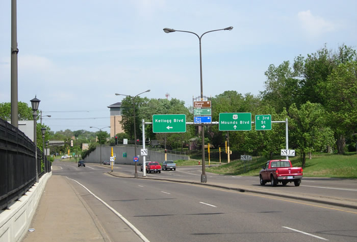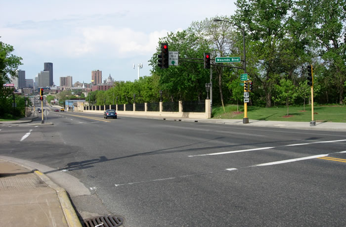 towards East 6th Street. Mounds Boulevard was reconstructed into a four-lane