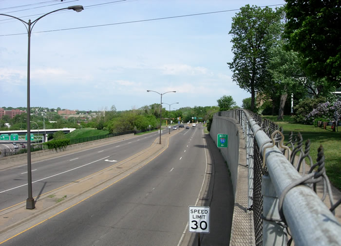 The ramps to and from Interstate 94 are just ahead. The original ramps were