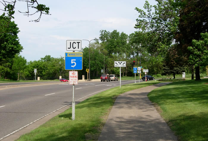 Approaching the junction with State Highway 5 at East 7th Street. Notice the